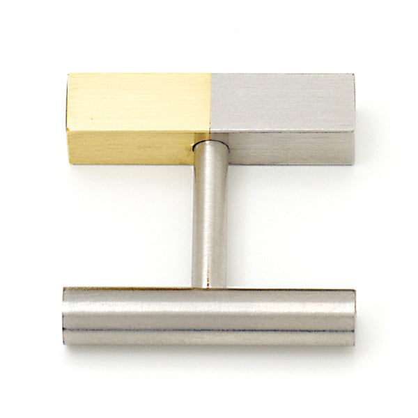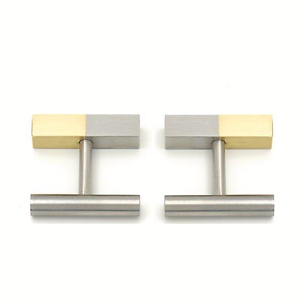 pair of square head cufflinks, 6 x 6 mm and a length of 25 mm with a tilting mechanism. made of 18K yellow gold and stainless steel.
