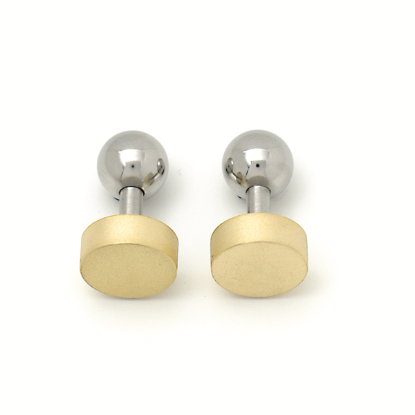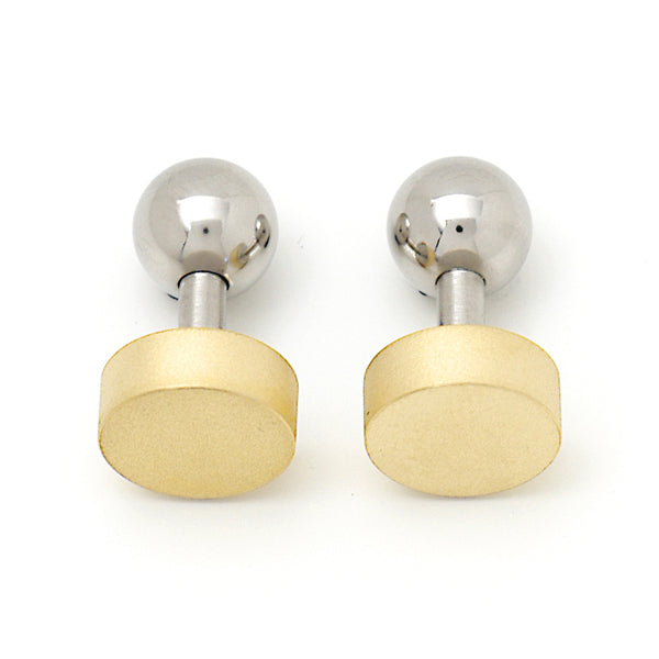 pair of cufflinks, with 12 mm diameter cylinders and 9 mm spheres, made of 18K yellow gold and stainless steel.slip in type, without a mechanism.