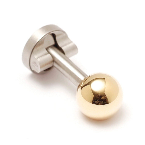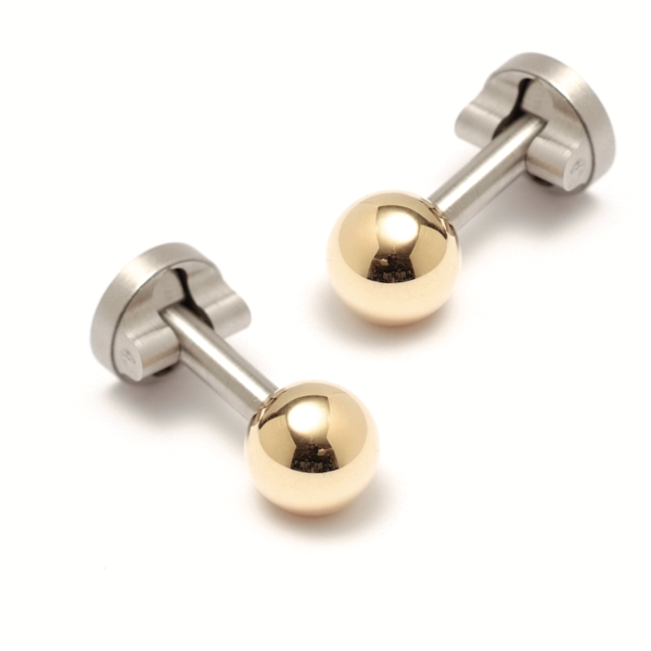 pair of cufflinks with spheres of 9 mm diameter and a tilting mechanism.made of 18K yellow gold and stainless steel.