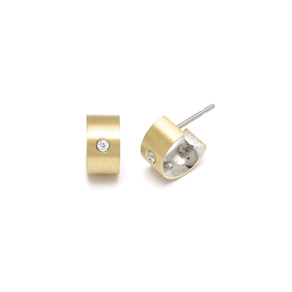 pair of earrings 12 mm diameter and 7 mm wide. Made of 18K yellow gold, stainless steel and set with 2 round brilliant cut diamonds 0.10ct. total weight.