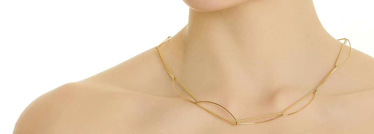 necklace in 18K yellow gold, consisting of 12 links with a wire diameter of 0.8/1.2 mm and a total length including clasp of 48 cm.
