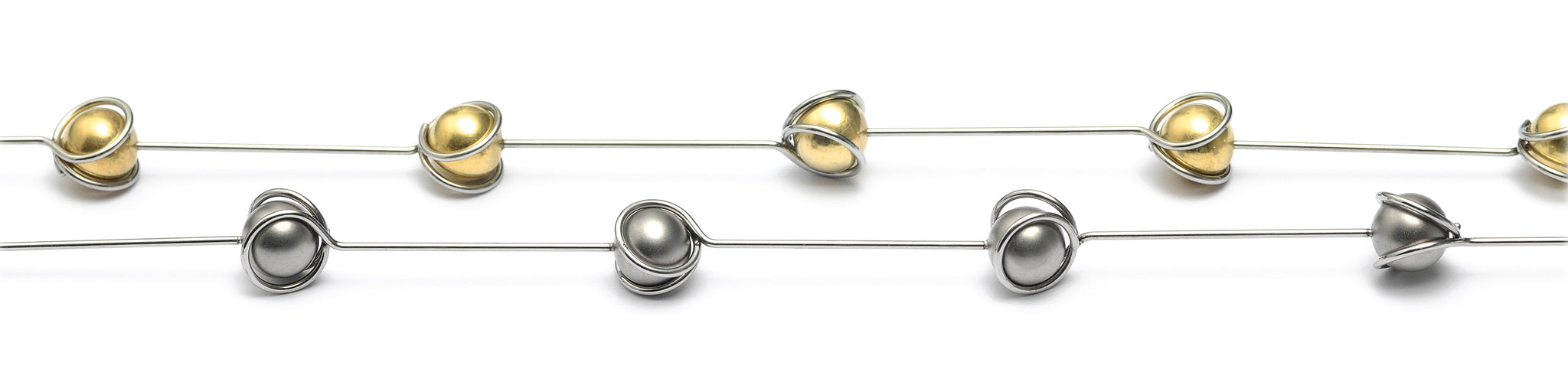 necklace in 18Kt yellow gold and stainless steel, consisting of 13 links, 7 mm spheres and a total length including clasp of 44 cm.
