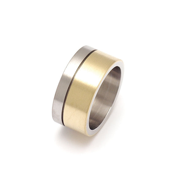 ring 10 mm wide made of 18K yellow gold and stainless steel.