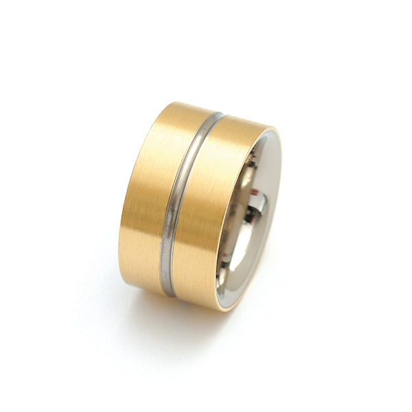 ring 12 mm wide made of 18K yellow gold and stainless steel.