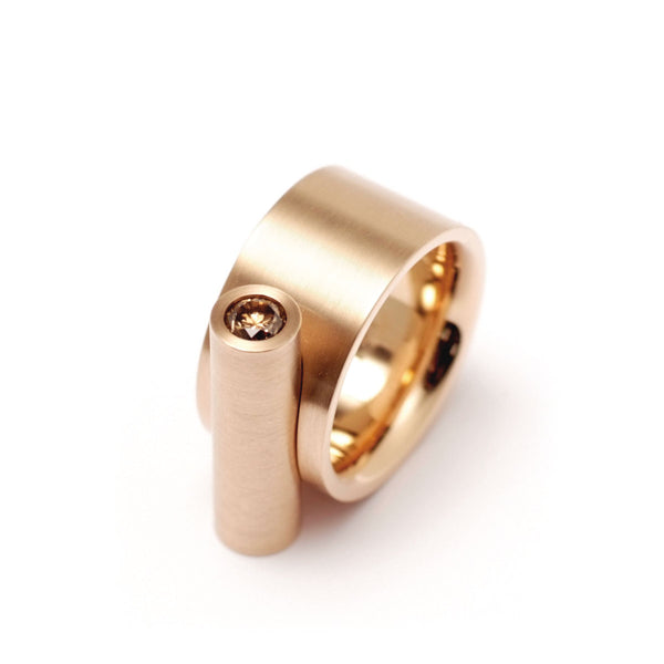 ring 12 mm wide made of 18K rose gold set with a golden brown round brilliant cut diamond 0.45ct, F/VS.