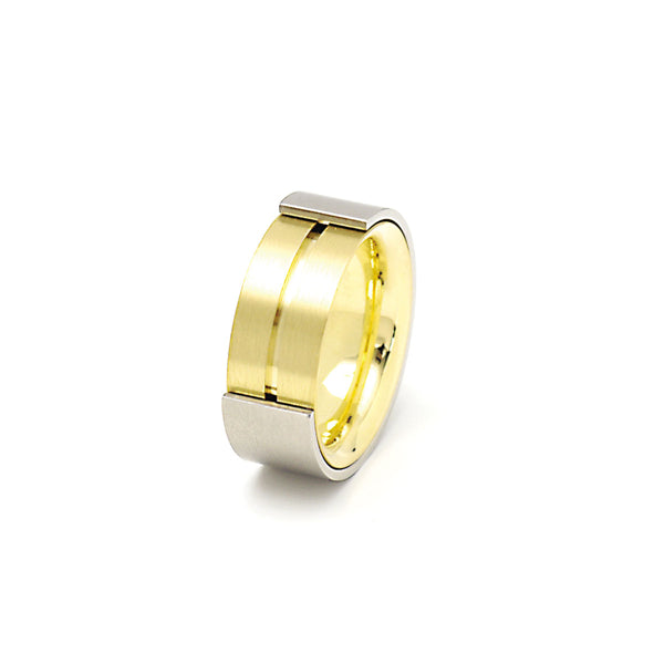 ring 8.5 mm wide made of 18K yellow gold and stainless steel.