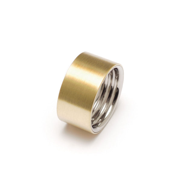 ring 12 mm wide made of 18K yellow gold and stainless steel.