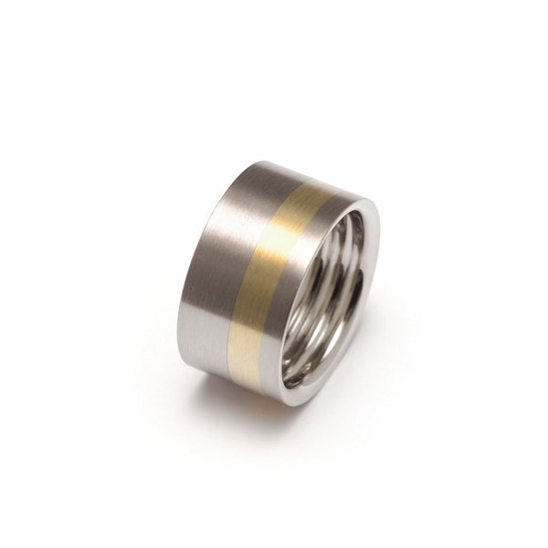 ring 12 mm wide made of 18K yellow gold and stainless steel.