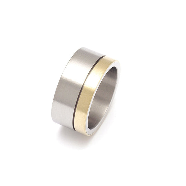 ring 10 mm wide made of 18K yellow gold and stainless steel.