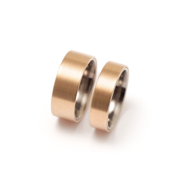 rings, 8 and 6 mm wide made of 18K rose gold and titanium.
