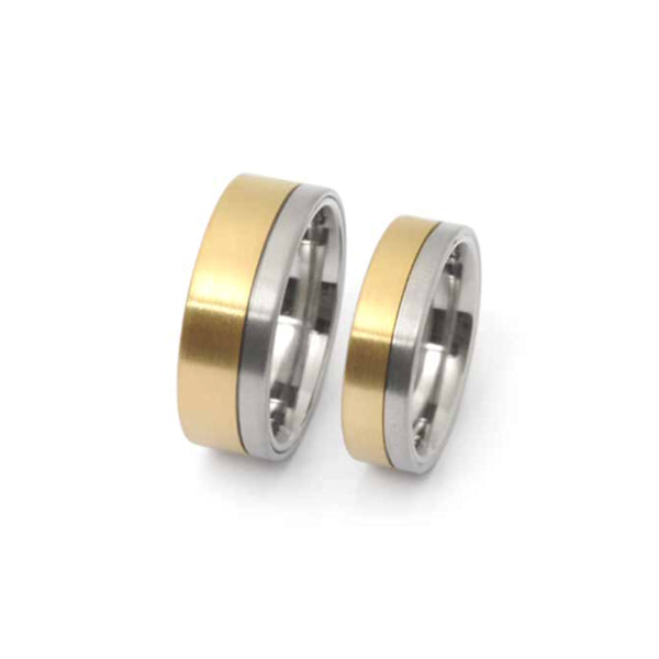 rings, 8 and 6 mm wide made of 18K yellow gold and titanium.