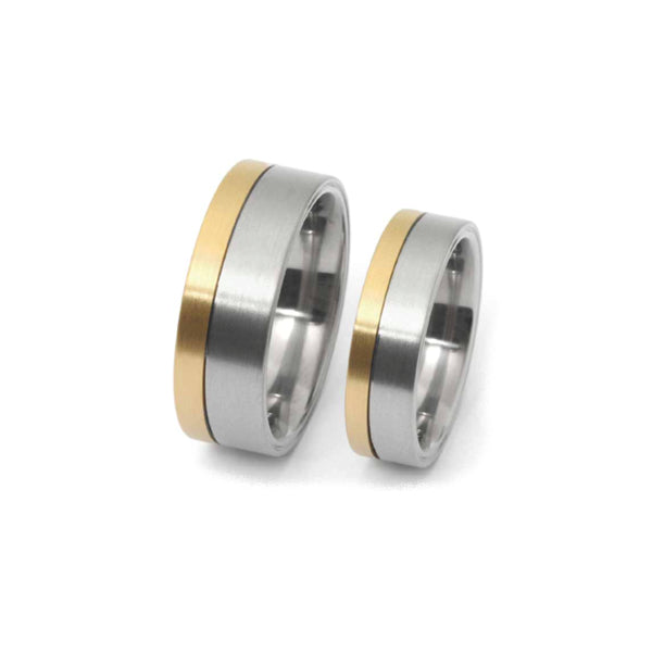 rings, 8 and 6 mm wide made of titanium and 18K yellow gold.
