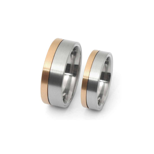 rings, 8 and 6 mm wide made of titanium and 18K rose gold.