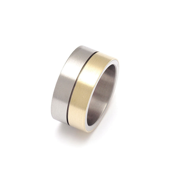 ring 10 mm wide made of 18K yellow gold and stainless steel.