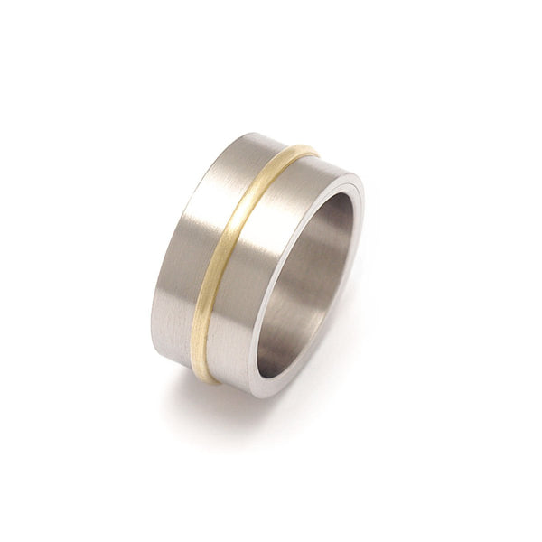 ring 10 mm wide made of 18K yellow gold and stainless steel.