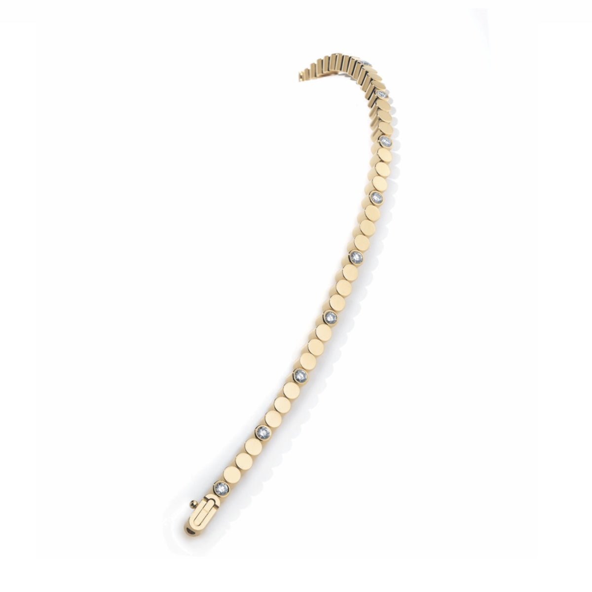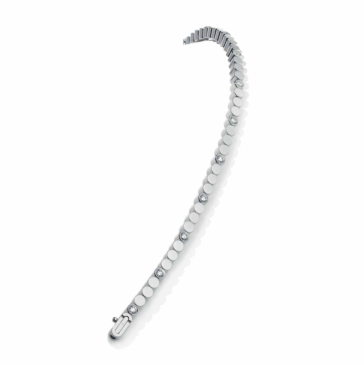 a diamond bracelet as a cool understatement and exquisitely elegant appearance, made of 950 platinum, 18k yellow or rose gold, set with 11 round brilliant cut diamonds, 1.09 ct total weight, F/vs.