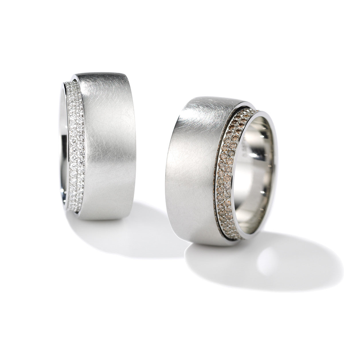 made of 950 platinum and pave set with 96 round brilliant cut diamonds, 0.54 ct. total weight, F/vs and 96 round brilliant cut brown diamonds, 0.64 ct. total weight.