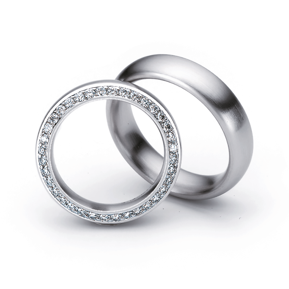 a heart full of happiness. wedding band 5 mm wide made of 950 platinum. with the option to be pave set on one side with 36 round brilliant cut diamonds 0.50 ct. total weight, F/vs.(number of diamonds varies depending on finger size)