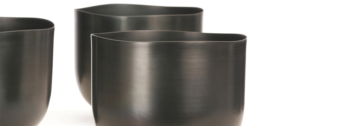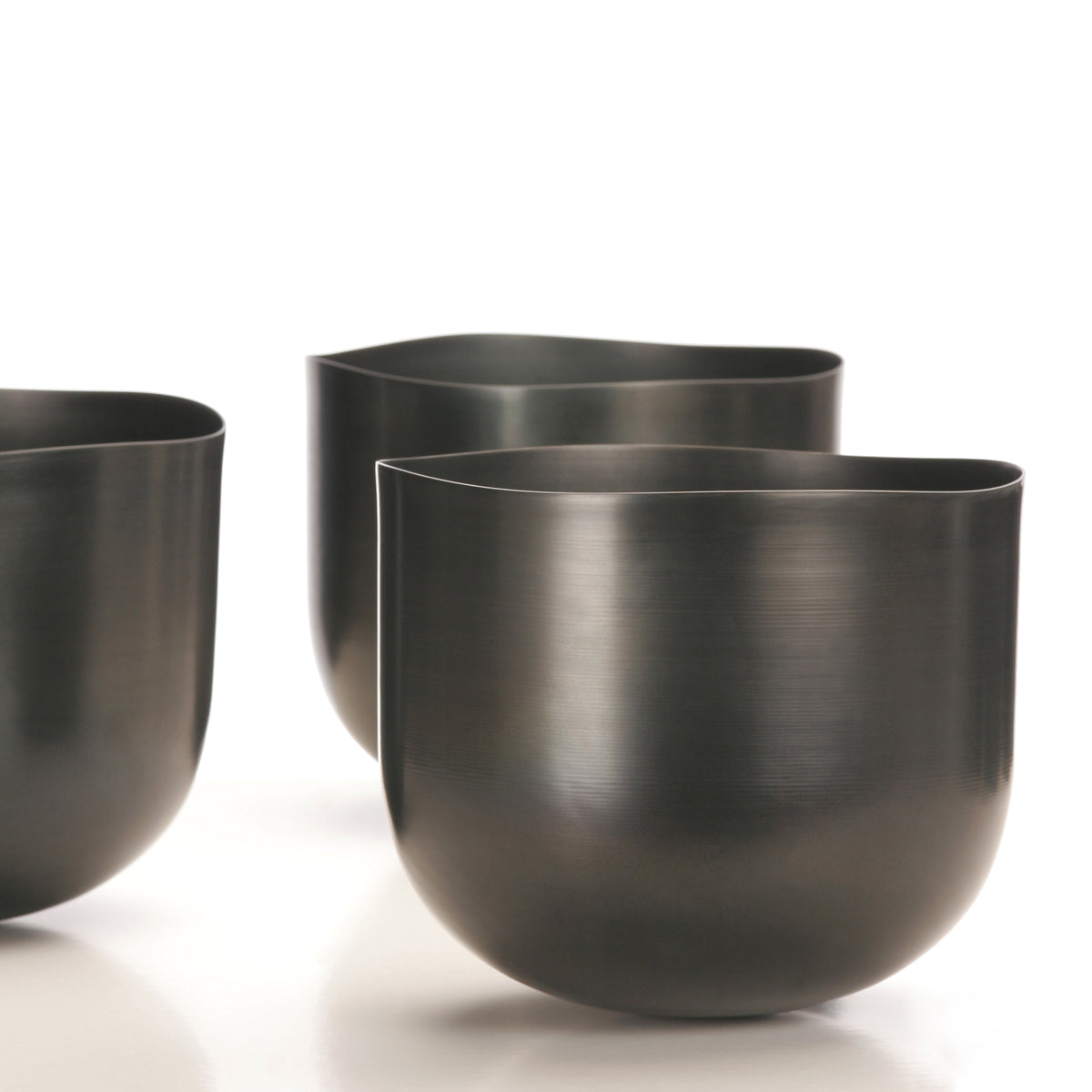 calm and modest, with a slightly corrugated edge. formed by rolling tools, the metal finds its way during processing and receives a slightly individual shape.