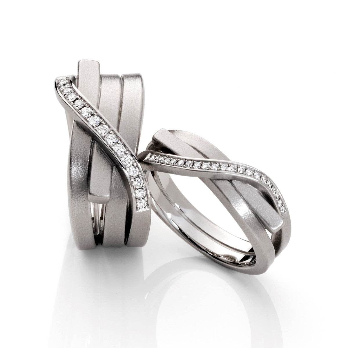 maritime ring (311.P or 310.P), built with 3.2 or 2.5 mm wide strands, made of stainless steel and set with round brilliant cut diamonds, G/Si1.