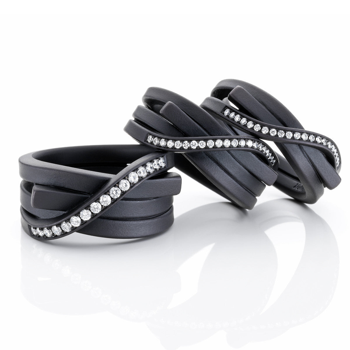 maritime ring (311.P or 310.P), built with 3.2 or 2.5 mm wide strands, made of black anodized stainless steel and set with round brilliant cut diamonds, G/Si1.