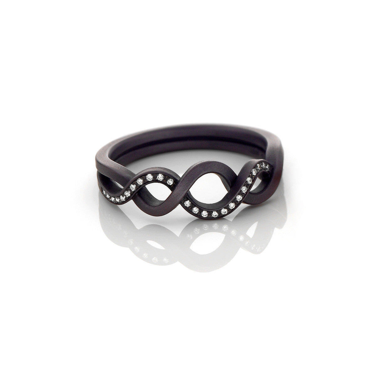 interwoven ring (388.P), built with two 1.5 mm wide strands, made of black anodized stainless steel and set with round brilliant cut diamonds, G/Si1.