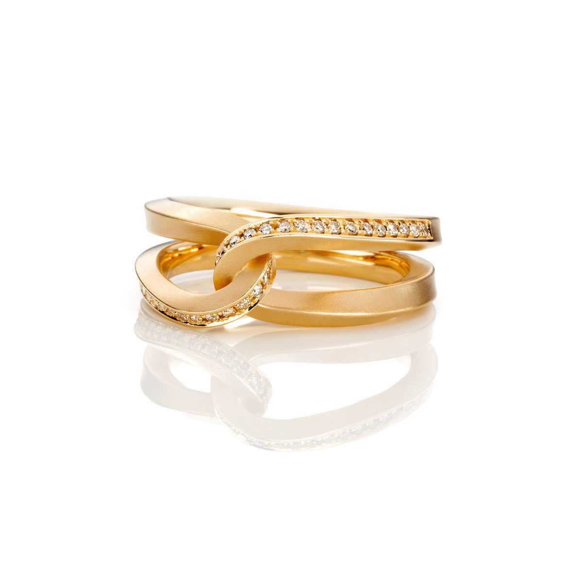 loop ring (110.2.P), built with a 2.5 mm wide strand, made of 18k rose gold and set with light brown round brilliant cut diamonds.