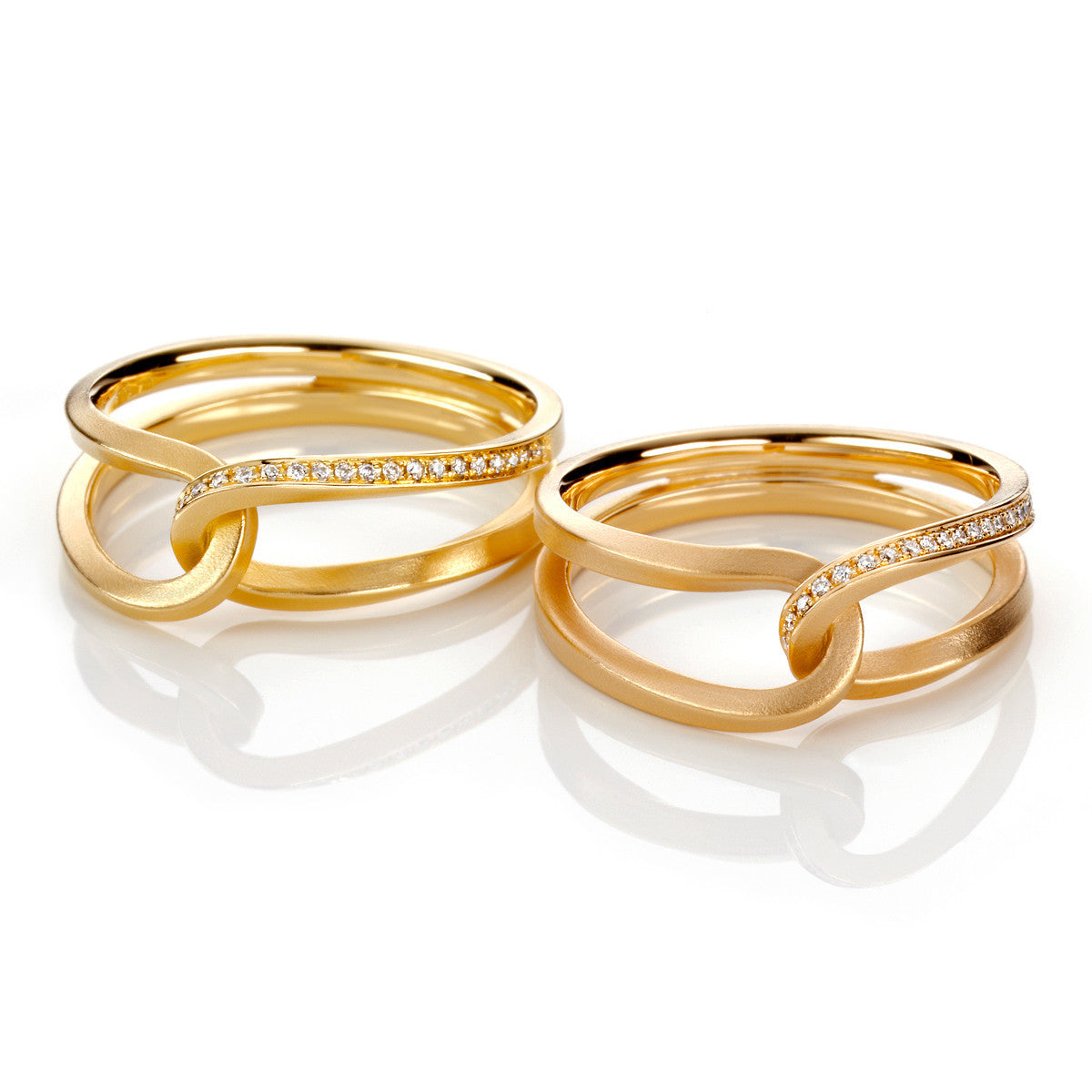 loop ring (110.1.P), built with a 1.5 mm wide strand, made of 18k yellow or rose gold and set with round brilliant cut diamonds, G/Si1.
