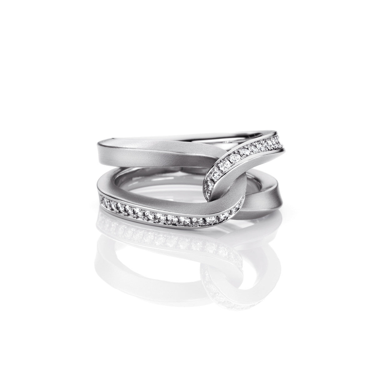 loop ring (110.2.P), built with a 3.2 mm wide strand, made of stainless steel and set with round brilliant cut diamonds, G/Si1.