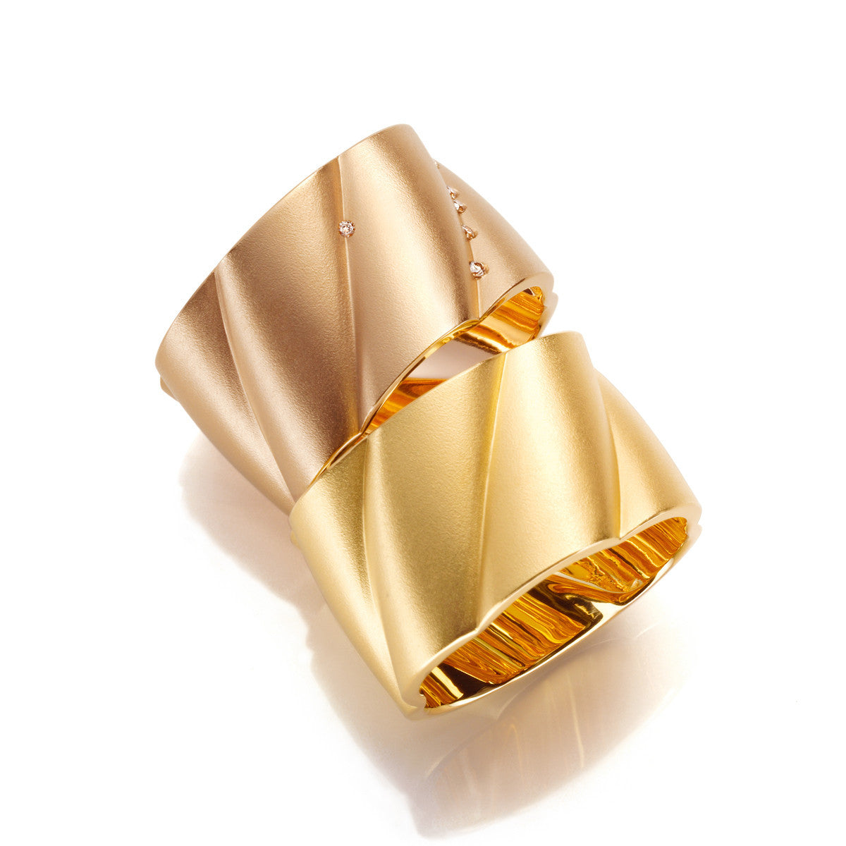 wave ring, made of 18k rose or yellow gold. the rose gold option is set with 4 diamonds G/Si1.