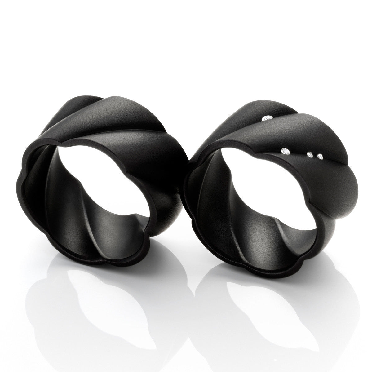 wave ring, made of black anodized stainless steel. with the option of being set with 4 diamonds G/Si1.