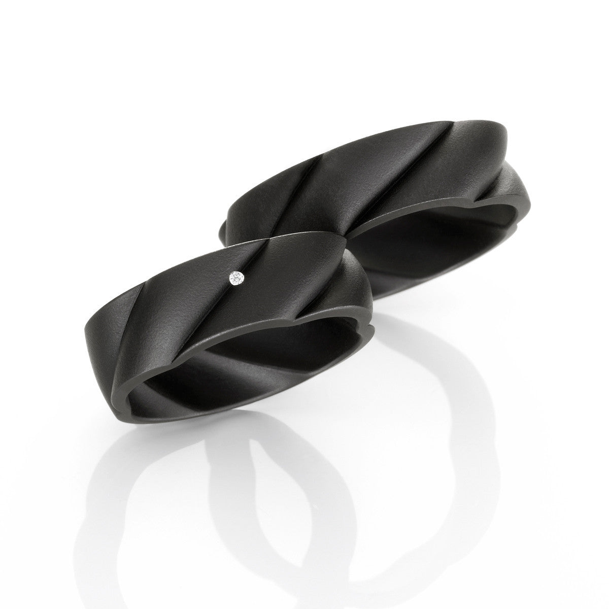 wave ring, made of black anodized stainless steel. with the option of being set with 1 round brilliant cut diamond, G/Si1.