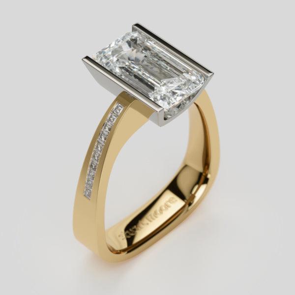 ring pictured is made out of yellow gold but is available in platinum, rose gold.