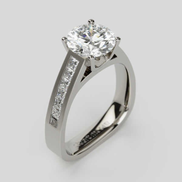 4mm hard wide — round brilliant cut center, 2.30 carat