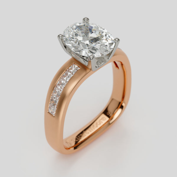 ring pictured is made out of rosé gold but is available in platinum, rose gold, yellow gold.