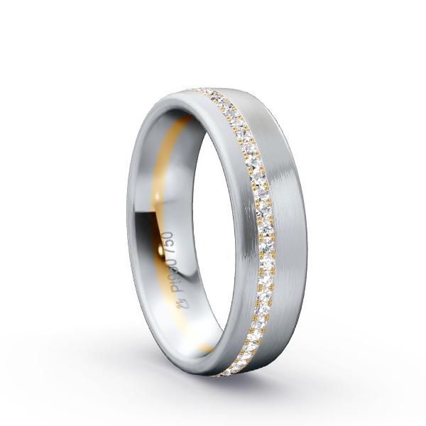 diamond band made of 950 platinum/ 18kt yellow gold, 5.5 mm wide, as shown set with 55 round brilliant cut diamonds, 0.275 ct. total weight, si/g.