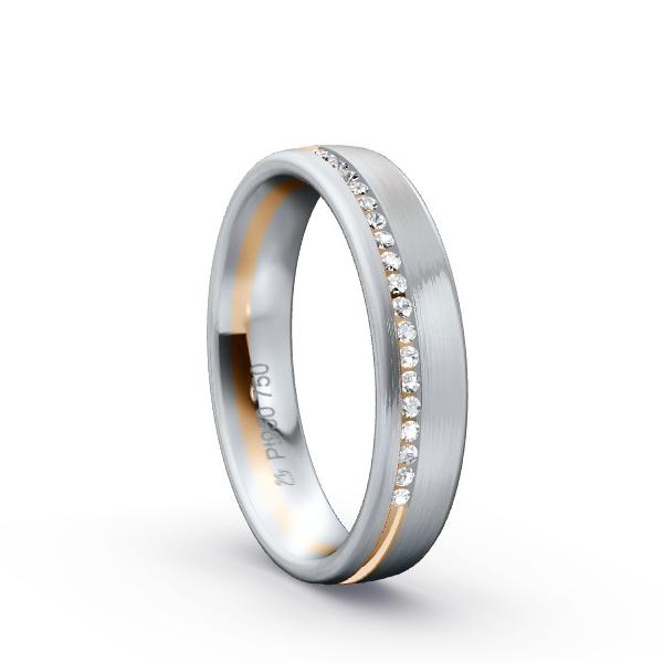 diamond band made of 950 platinum/ 18kt rose gold, 4.5 mm wide, set with 19 round brilliant cut diamonds, 0.095 ct. total weight, si/g.