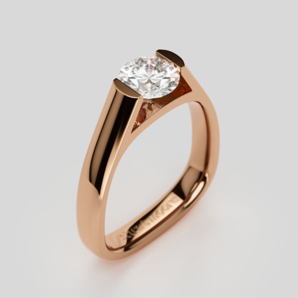 born from engineering innovation, suspension eliminates prongs entirely, securing the stone between two cold-worked metal walls — awarded best design of the decade by the platinum guild international.