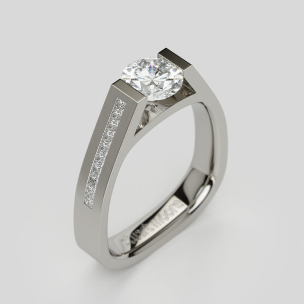 born from engineering innovation, suspension eliminates prongs entirely, securing the stone between two cold-worked metal walls — awarded best design of the decade by the platinum guild international.